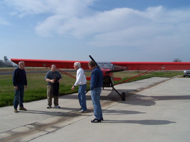 The plan was to gather at Oakdale Airport (O27) at 12:30pm with a scheduled take-off time of 1:00pm. Two pilot friends of mine, Joey Myers and Emmet Welch were to meet me for photos and all around well wishes. I arrived at 9:30am and cleaned the airplane off. I then went to hang out with the guys from EAA, Leon, Jim, Ken. They were definately looking forward to the first flight far more than I was. At about 11:30am Joey texted me that the winds were picking up at Rio Vista and that he was only making 11 MPH ground speed. He elected to turn around and head home. Winds were still light at Oakdale so the flight was still a go for me. Emmet showed up right on time at 12:30pm. However, I could see the wind sock starting to move and fearing that those 35 – 45 MPH winds were headed our way I elected to depart immediately.